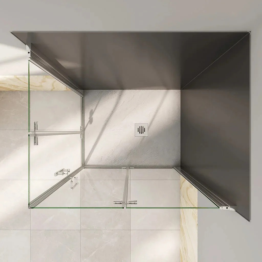Echtglas-Duschabtrennung: Statt instabiler Vorhänge verbauen wir eine elegante Echtglas-Kabine, die für optische Weite und höchste Stabilität sorgt.